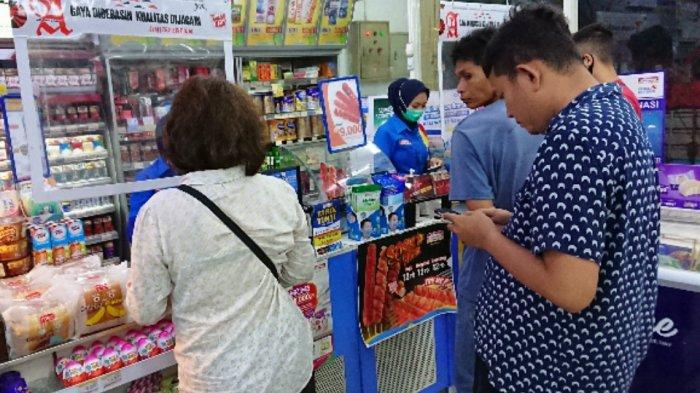 TRIBUN-PANTURA.COM, BATANG - Beberapa mini market yang ada di Jalan Pantura Batang dipenuhi masyarakat untuk top up kartu tol.