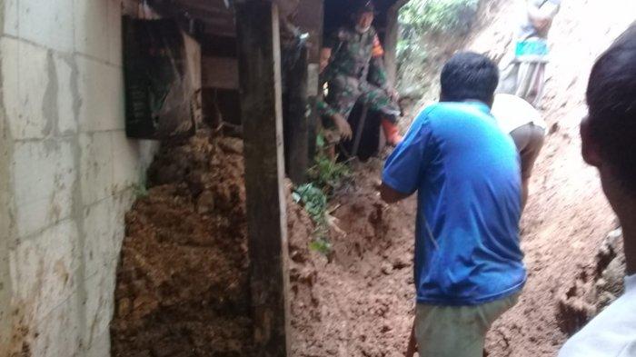 TRIBUN-PANTURA.COM, KAJEN - Dua rumah warga yang di Dukuh Jrakah, Desa Tembelanggunung, Kecamatan Lebakbarang, Kabupaten Pekalongan, Jawa Tengah rusak akibat tertimpa material setinggi 7 meter.