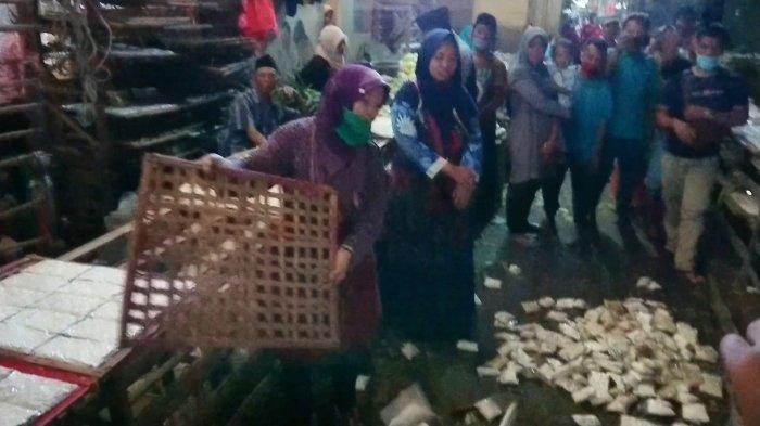 Kamis (22/4/2021) pagi, aksi bar-bar dilakukan para pedagang tempe di pasar tersebut.