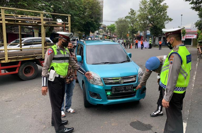 10 mobil pribadi terjaring operasi strobo rotator dan sirine yang digelar oleh Satlantas Polres Karanganyar di jalan depan Terminal Jungke.