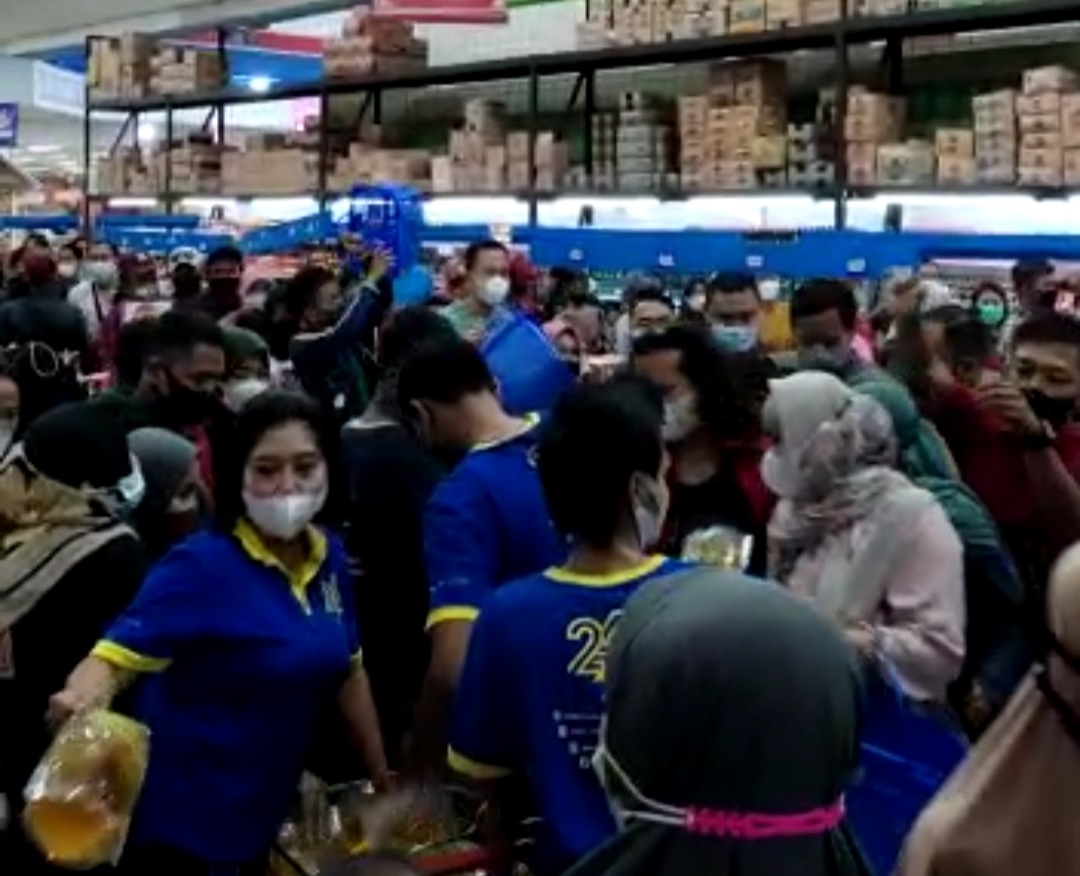 Warga Saling Dorong dan Berebut Minyak Goreng di Swalayan Modern di Purwokerto