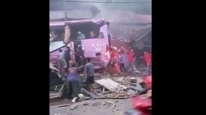 Bus menabrak sejumlah pengendara sepeda motor dan akhirnya menghantam rumah warga di Dusun Paripurna Desa Payungsari.