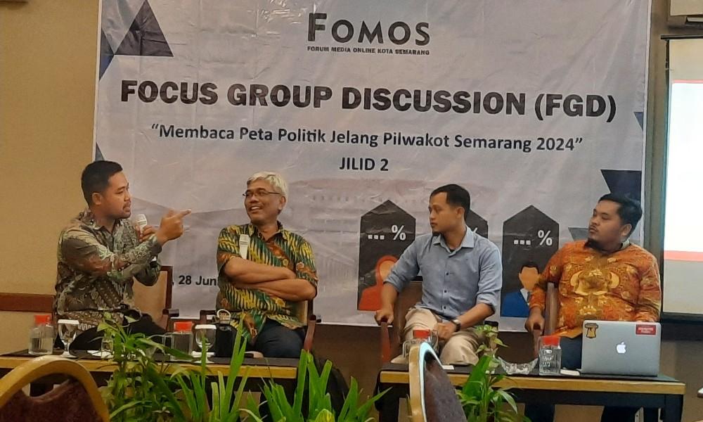 Hal itu disampaikan Pengamat politik Universitas Katolik (Unika) Soegijapranata Semarang, Andreas Pandiangan, saat Forum Group Discussion Membaca Peta Politik Jelang Pilwakot Semarang 2024, yang digelat oleh Fomos, di Hotel Neo, Jumat (28/6/2024) sore.