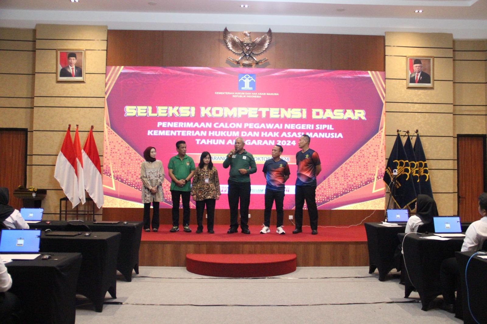 Hari pertama pelaksanaan Seleksi Kompetensi Dasar (SKD) Kantor Wilayah Kemenkumham Jawa Tengah resmi dibuka oleh Kepala Kantor Wilayah Tejo Harwanto, di Balai Diklat Hukum dan HAM Jateng, Sabtu (19/10/2024).