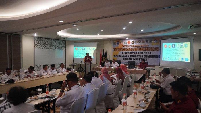 Rakor ini mengusung tema “Sinergitas TIM PORA Mengawal Kabupaten Semarang Ramah Investasi” dan dihadiri oleh berbagai instansi terkait, termasuk Pengawas Tenaga Kerja Provinsi Jawa Tengah, Lapas, Polres, Kodim, Badan Kesbangpol, serta perwakilan dari Dinas Pariwisata, Dinas Tenaga Kerja, dan Badan Intelijen Negara Kabupaten Semarang.