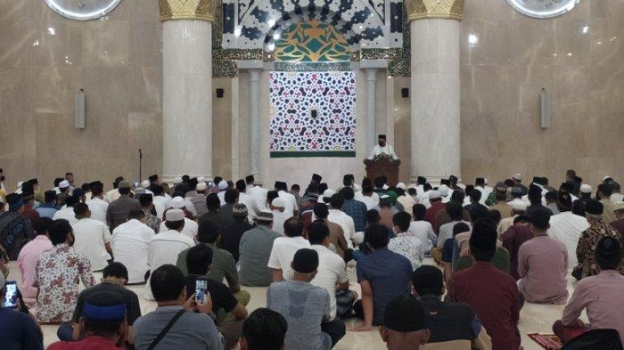 Juliyatmono memberikan tausiah usai salat tarawih di Masjid Agung Madaniyah, Sabtu (2/4/2022) malam.