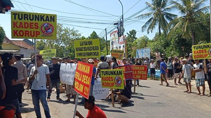 Ratusan warga Desa Wuled, Kecamatan Tirto, Kabupaten Pekalongan, Jawa Tengah menggeruduk balai desa setempat, Rabu (18/9/2024).