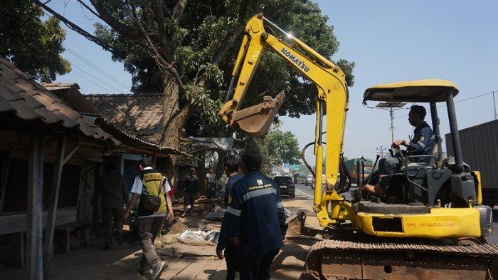 Deretan bangunan warung ilegal di Desa Margorejo, Kecamatan Margorejo, Kabupaten Pati, akhirnya digusur habis oleh Satpol PP.